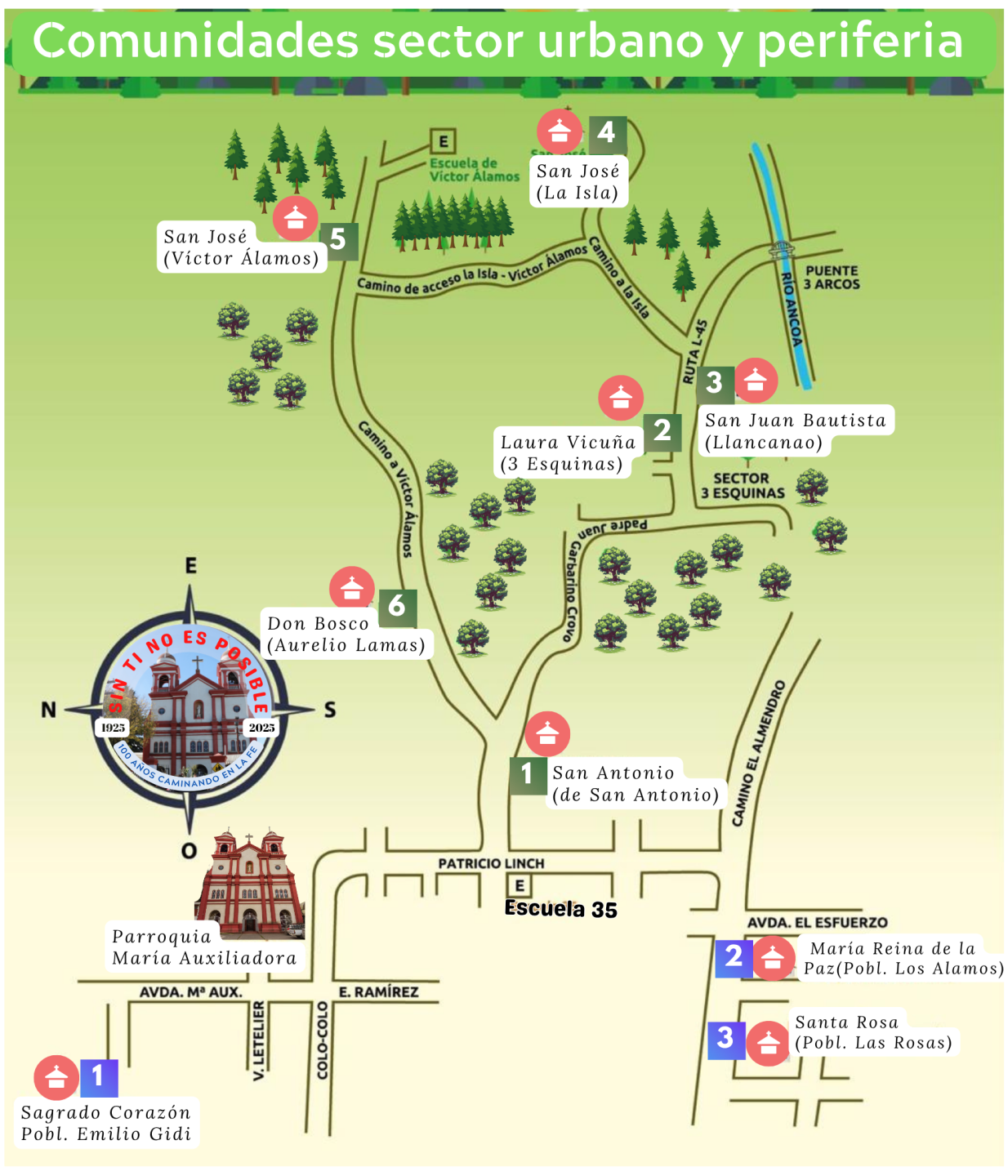 Les invitamos a sumergirse en este recorrido virtual, que nos trae a la Parroquia María Auxiliadora de Linares, una historia próxima a su centenario. Hoy la podemos conocer desde la perspectiva que la tecnología nos facilita: Fundación, tradición, arte, cultura, vida y expresiones de religiosidad popular con una mirada de fe y carisma salesianos que ha acompañado el crecimiento y evolución de las comunidades del sector sur oriente de la ciudad.